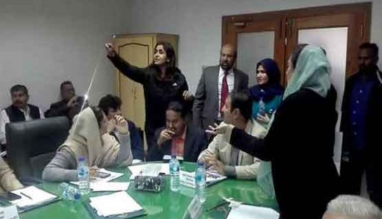 کھلاڑیوں نے ڈاکٹر فہمیدہ مرزا کو مخاطب کرتے ہوئے کہا کہ وزیر صاحبہ یہ کیا طریقہ ہے؟ آپ ہمیں چھوڑ کر خود اجلاس میں پہنچ گئیں۔اس دوران چئیرمین بین الصوبائی رابطہ کمیٹی خواتین کھلاڑیوں کو خاموش کرواتے رہے لیکن کھلاڑیوں نے احتجاج جاری رکھا۔